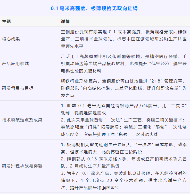0.1毫米高强硅钢!三项技术全球领先!